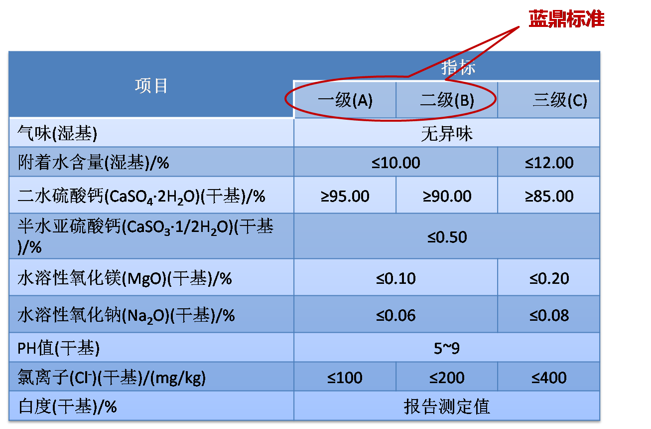 煙氣脫硫石膏是電廠、鋼鐵廠采用石灰石-石膏濕法脫硫工藝產(chǎn)生的副產(chǎn)物,其質(zhì)量高低主要取決于脫硫劑石灰石的品位和脫硫工段的運(yùn)行管理。我司使用的脫硫劑石灰石品位高、煙氣脫硫過程指標(biāo)控制穩(wěn)定、脫硫和石膏漿液脫水系統(tǒng)運(yùn)行管理可靠,因此更容易實(shí)現(xiàn)對副產(chǎn)脫硫石膏的質(zhì)量控制,脫硫石膏中二水硫酸鈣含量高達(dá)95%以上,CI-100mg/L以下,遠(yuǎn)高于天然石膏和磷石膏。