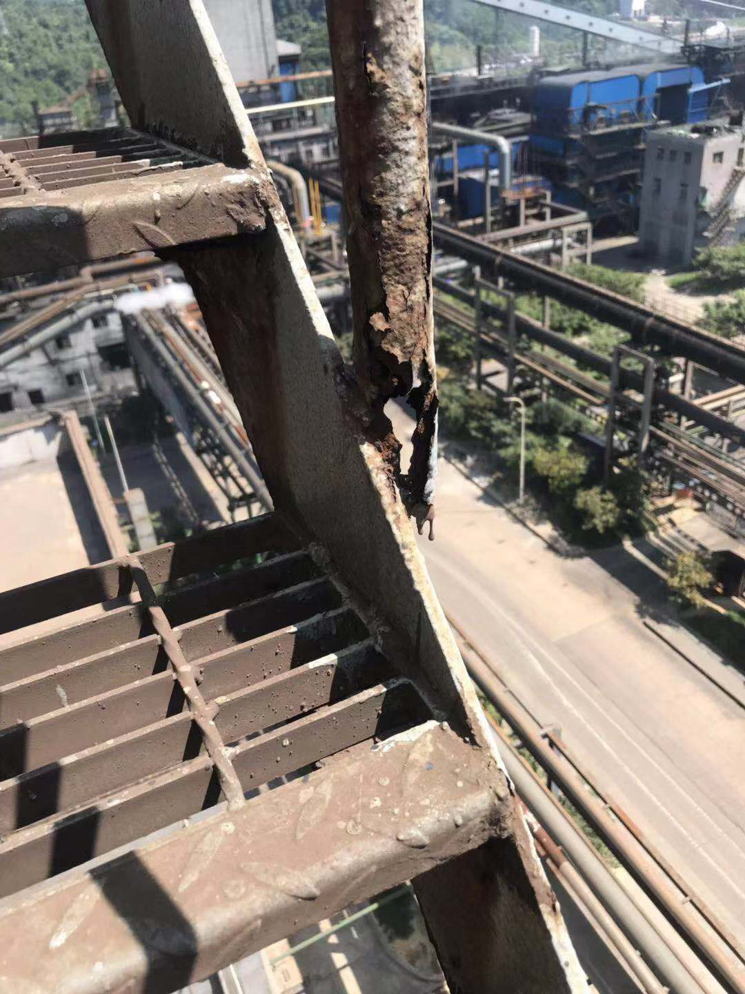 內(nèi)江藍(lán)鼎自接手運(yùn)維工作以來,在實(shí)際生產(chǎn)運(yùn)行中發(fā)現(xiàn)了許多安全隱患,其中燒結(jié)1#2#脫硫塔上塔梯步腐蝕嚴(yán)重,人員上下塔存在嚴(yán)重安全隱患,為保障人員安全,生產(chǎn)部決定將1#2#脫硫塔上塔梯步平臺進(jìn)行全面修復(fù)更換,拆除嚴(yán)重腐蝕的護(hù)欄、平臺,安裝新護(hù)欄、平臺。