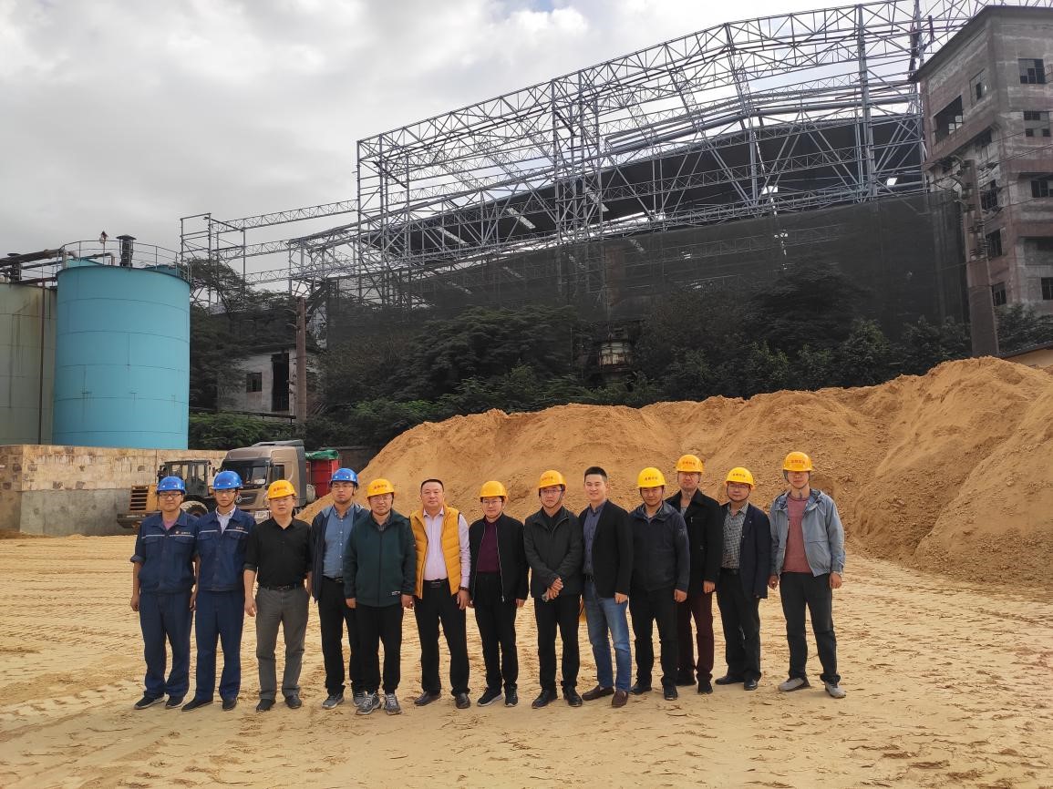 公司領(lǐng)導(dǎo)同考察團(tuán)在石膏堆場(chǎng)參觀合影
