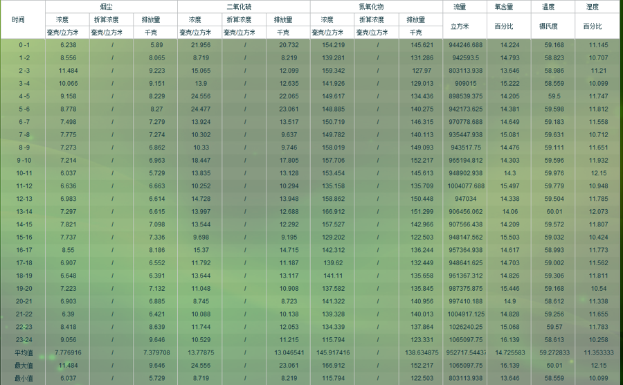 二號燒結(jié)脫硫出口運行日報表