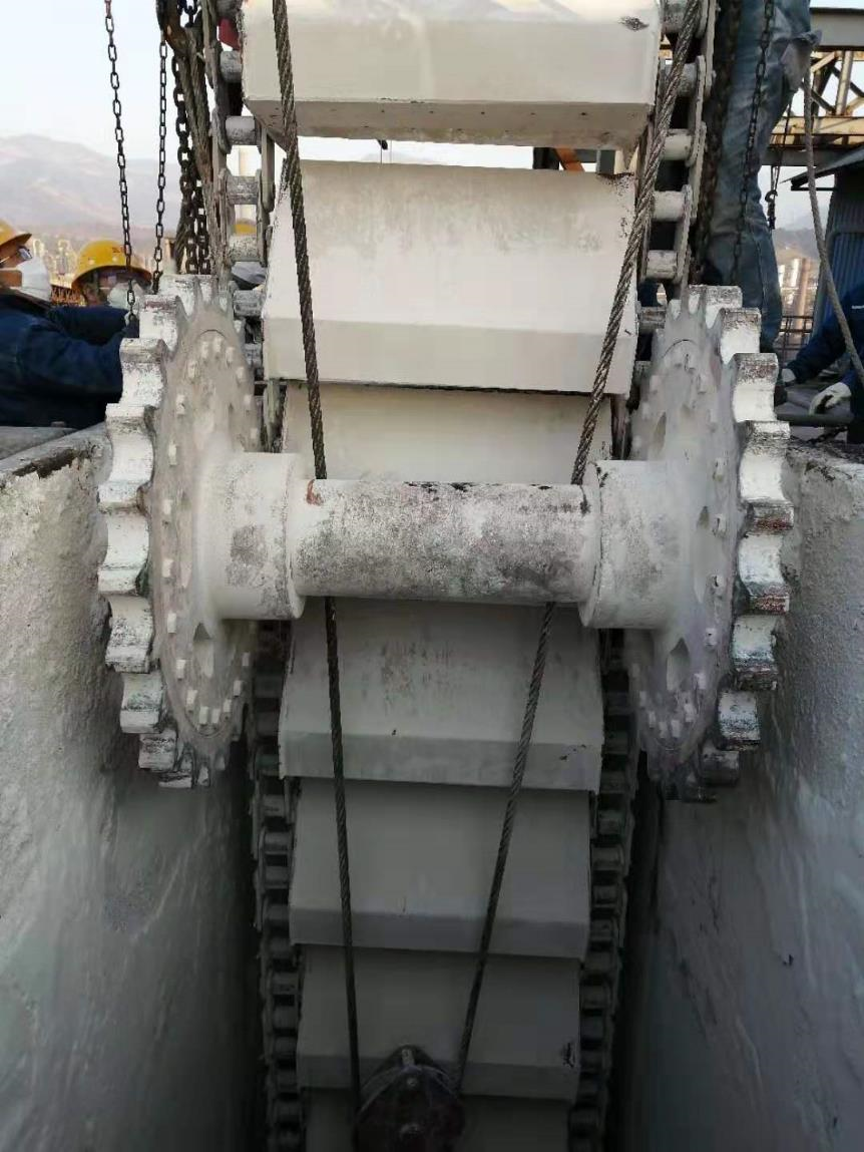 西昌藍鼎半干法脫硫系統(tǒng)已經(jīng)安全穩(wěn)定的運行了6年,二氧化硫氣體長期腐蝕機械設(shè)備,特別是碳鋼材質(zhì)的斗提鏈條腐蝕嚴重,隨時都有斷裂的風險。