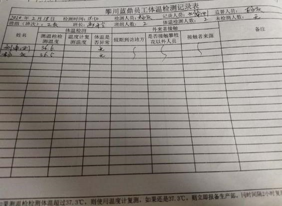 粉線2月18日留守員工體溫監(jiān)測記錄