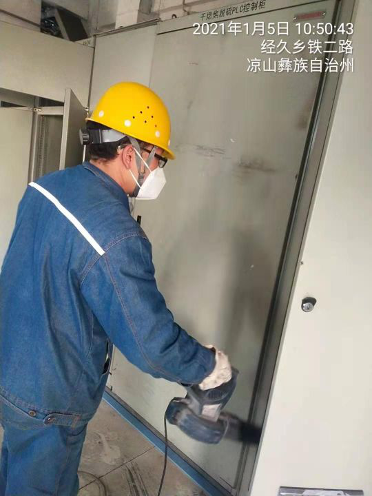 9:30干熄脫硫系統(tǒng)停機,機修人員首先檢查了風(fēng)機軸承潤滑油,發(fā)現(xiàn)油脂有變質(zhì)現(xiàn)象,立刻更換了潤滑油。檢查完風(fēng)機后又檢查維修意大利進口磨機等。電儀人員對配電室的隔離開關(guān)加裝防塵擋板,檢查緊固所有接線端子,清潔電氣設(shè)備的衛(wèi)生等。通過大家的共同努力,13:30圓滿完成大修工作,14:00干熄焦脫硫系統(tǒng)開機,運行正常。