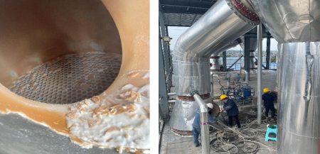 檢修現(xiàn)場更換稠厚器攪拌、硝一效主體墊子