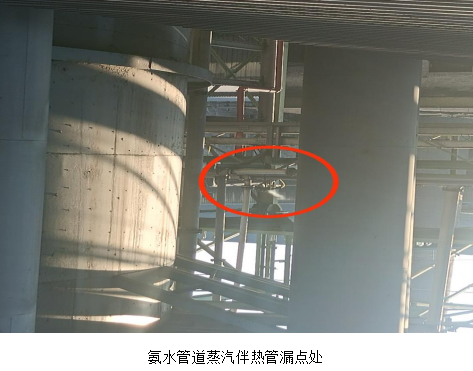 7月26日早上,丙班白班當班脫硫巡檢正常巡檢到一期塔區(qū)時,發(fā)現(xiàn)位于高空橋架位置,尿素水解器氨氣輸送管道伴熱管閥欄處存在漏白色霧狀氣體,巡檢初步判斷為蒸汽管道腐蝕泄漏,隨即向生產班班長和檢修班班長匯報該情況。