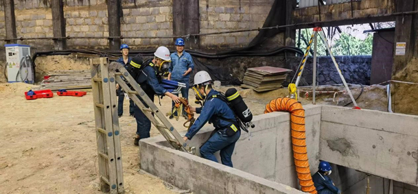 為進一步加強職工的安全環(huán)保意識,提高在有限空間作業(yè)中突發(fā)事故的應急處置能力,掌握科學的事故處置程序,并最大限度地減少事故造成的人員傷亡,同時防止因盲目施救而引發(fā)事故擴大,攀藍鼎生產(chǎn)部于2024年3月25日組織了一場《有限空間作業(yè)中毒處置》應急預案演練。