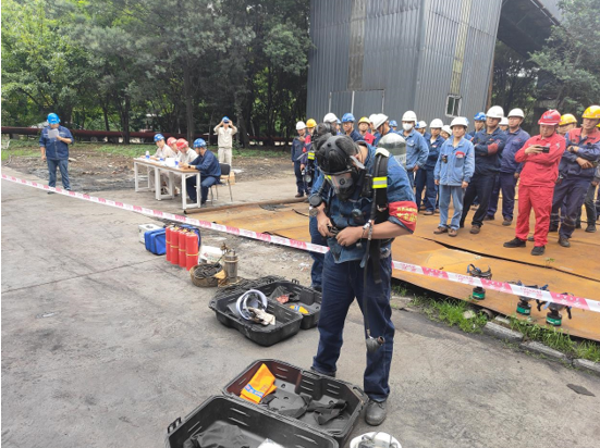 在演練過(guò)程中,西昌藍(lán)鼎組織應(yīng)急搶險(xiǎn)小組迅速展開(kāi)行動(dòng),分別負(fù)責(zé)環(huán)境化驗(yàn)檢測(cè)、安全警戒、生產(chǎn)搶險(xiǎn)、設(shè)備搶險(xiǎn)和醫(yī)療救護(hù)等工作。演練還模擬了一名工作人員因地面濕滑不慎摔倒受傷的場(chǎng)景,醫(yī)療救護(hù)組立即組織人員對(duì)受傷員工進(jìn)行了現(xiàn)場(chǎng)急救,并成功脫險(xiǎn)。