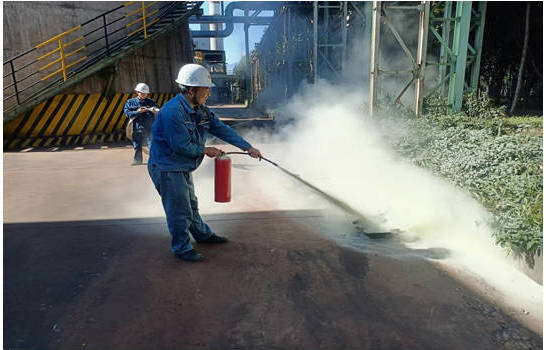 本次演練模擬場景為球團(tuán)綠化帶起火, 14:00演練正式開始。西昌藍(lán)鼎巡檢員在現(xiàn)場檢查時發(fā)現(xiàn)球團(tuán)綠化帶出現(xiàn)火情,迅速上報當(dāng)班班長。班長以最快速度將情況上報生產(chǎn)副部長,生產(chǎn)副部長按照規(guī)定的匯報機(jī)制,迅速將信息傳達(dá)至球團(tuán)主任。得到搶險指示后,西昌藍(lán)鼎生產(chǎn)部立即行動,有條不紊地組織人員疏散,對現(xiàn)場進(jìn)行了嚴(yán)格的警戒隔離,確保周邊人員的安全。同時,各部門迅速組織力量,憑借嫻熟的技能和豐富的經(jīng)驗,將火情進(jìn)行了有效撲滅。